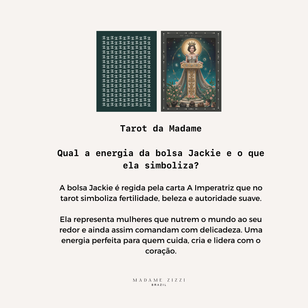 Inspirada na elegância atemporal de Jackie Kennedy Onassis, a bolsa Jackie da Madame Zizzi traduz autoridade com doçura, estilo com história e sofisticação com alma.